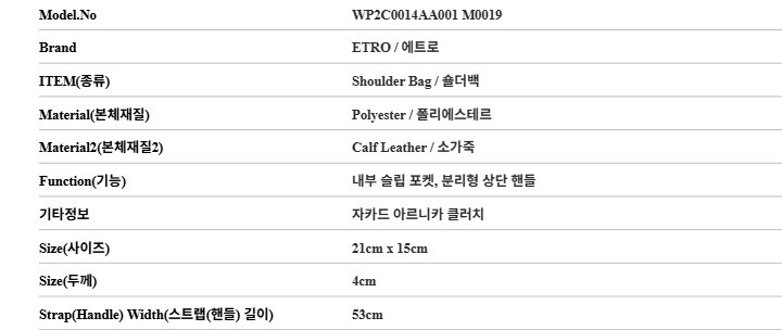 에트로 가방 WP2C0014AA001 M0019 페이즐리 자카드 아르니카 여성숄더백 당일발송