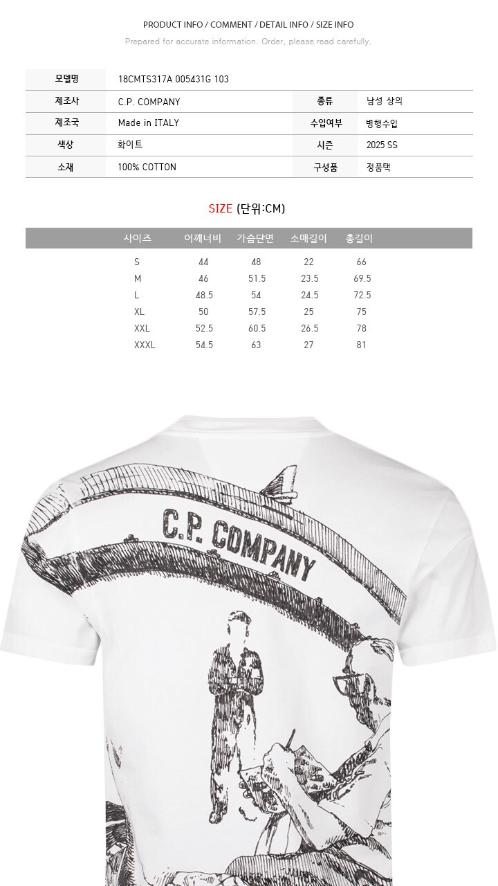 CP 25SS 아트워크 로고 티셔츠 화이트 18CMTS317A 005431G 103