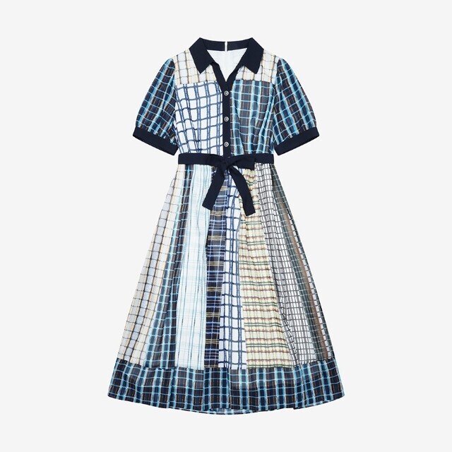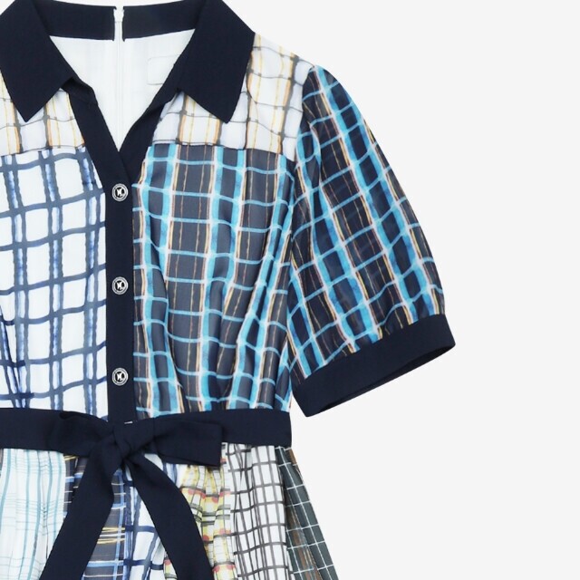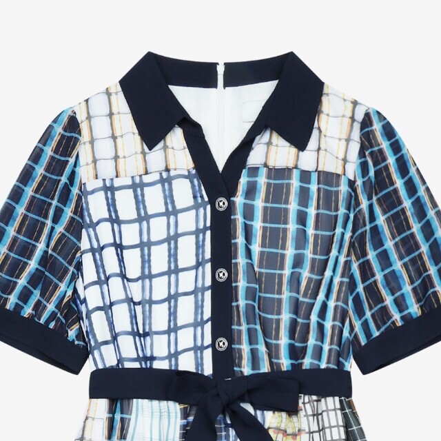 베스띠벨리 체크배색 쉬폰 롱원피스BKOAE25320