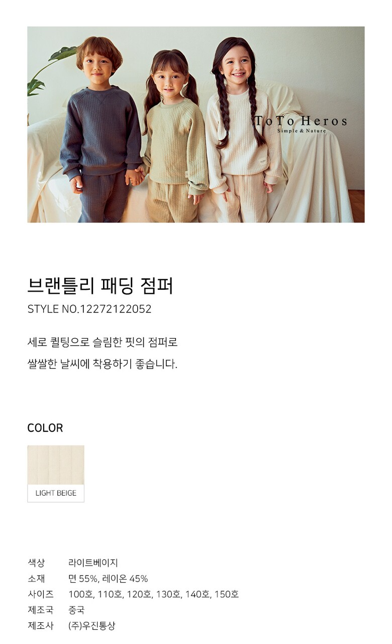1. 제품 소재 (섬유의 조성 또는 혼용률을 백분율로 표시, 기능성인 경우 성적서 또는 허가서) | 면 55%, 레이온 45% |