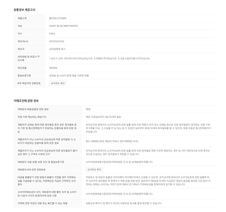 6. 세탁방법 및 취급시 주의사항 | 상품상세참조 |