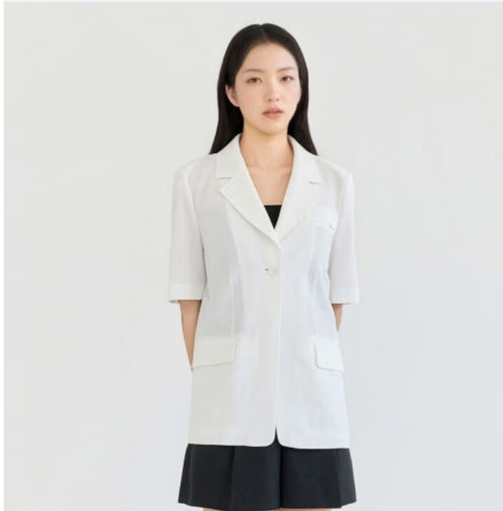 펜던트로 포인트를 준 깔끔한 정장 자켓입니다.