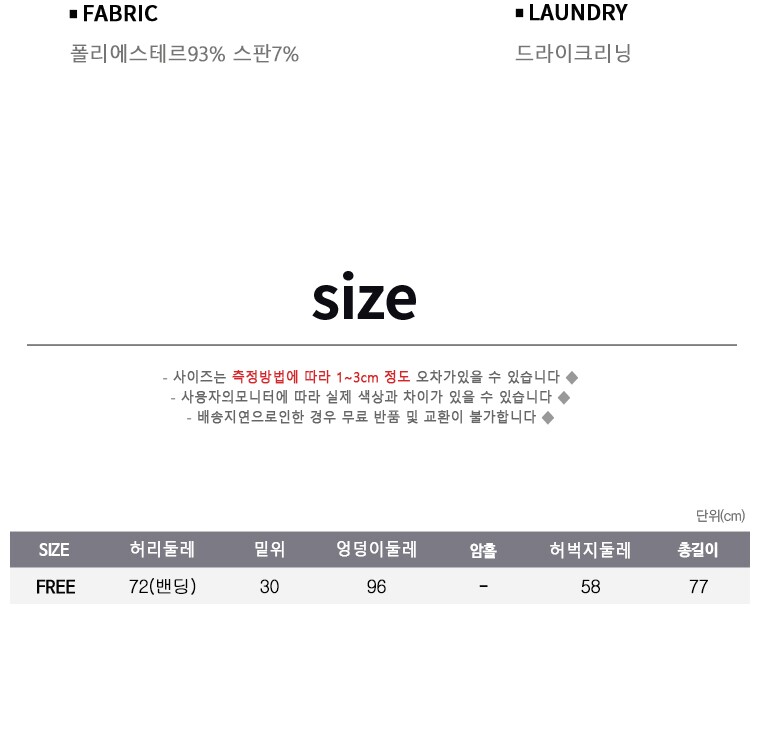 • 처음 배송된 상품상태와 다를 경우(세탁/착용 후 외출하신 경우) 반품이 불가합니다.