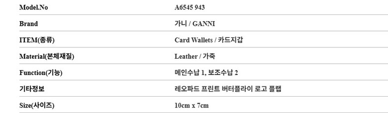 가니 지갑 A6545 943 레오파드 프린트 버터플라이 로고 플랩 여성카드지갑 당일발송