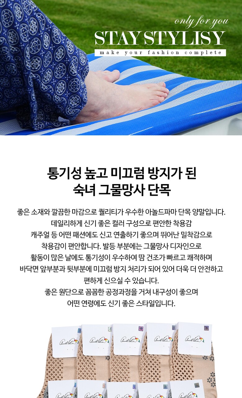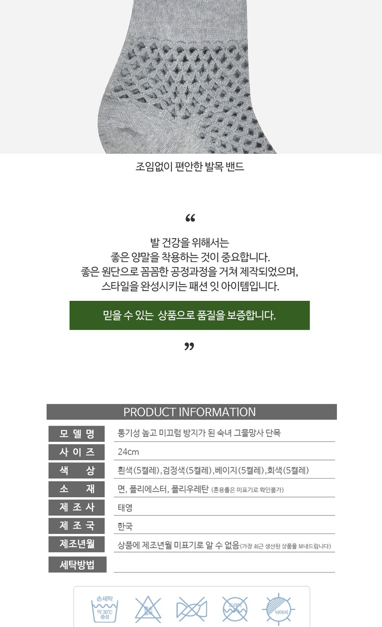 통기성 높고 미끄럼 방지가 된 숙녀 발등 그물망사 단목 양말0020ka