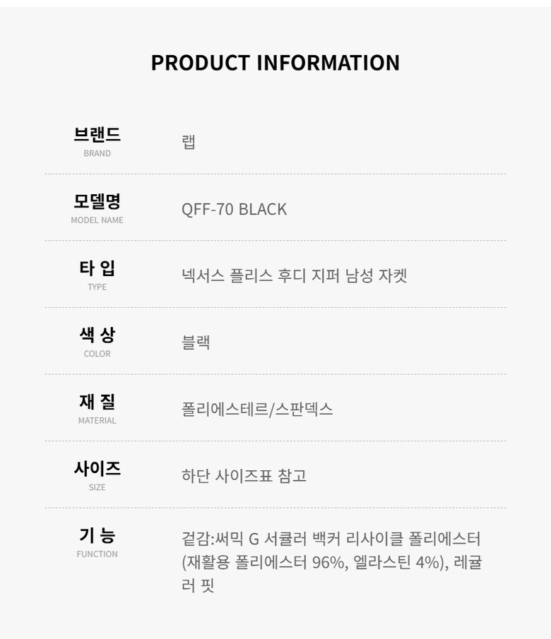 1. 제품 소재 (섬유의 조성 또는 혼용률을 백분율로 표시, 기능성인 경우 성적서 또는 허가서) 폴리에스테르