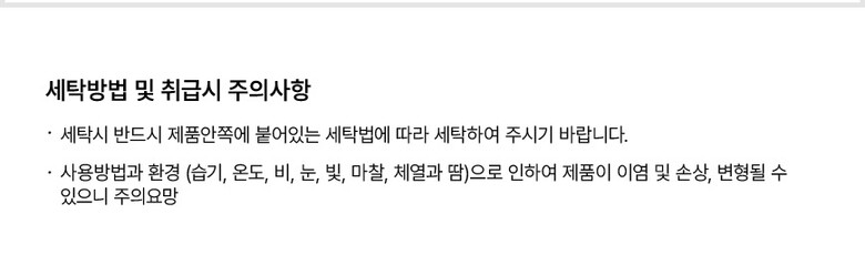 6. 취급시 주의사항 | 열이나 직사광선, 습기에 주의하고, 부드러운 소재를 사용하여 닦아주시기 바랍니다. |