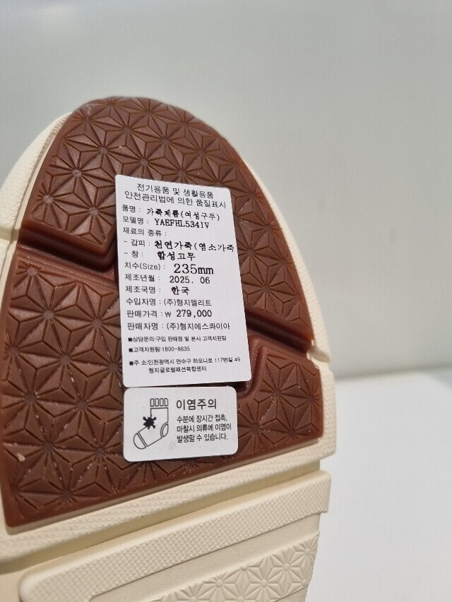 | 1. 제품 소재 (운동화인 경우에는 겉감, 안감을 구분하여 표시) | 염소가죽 |