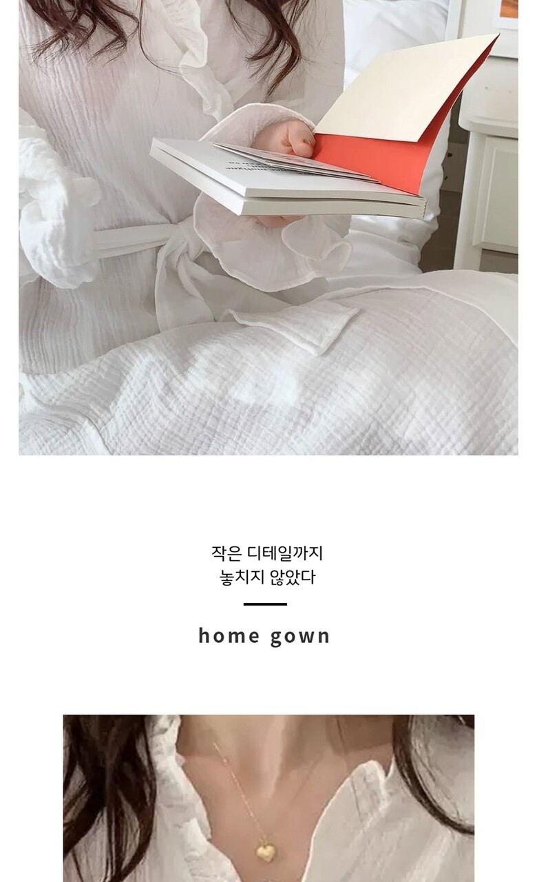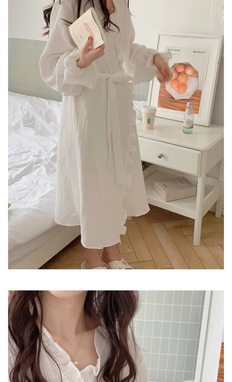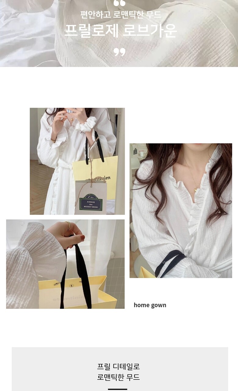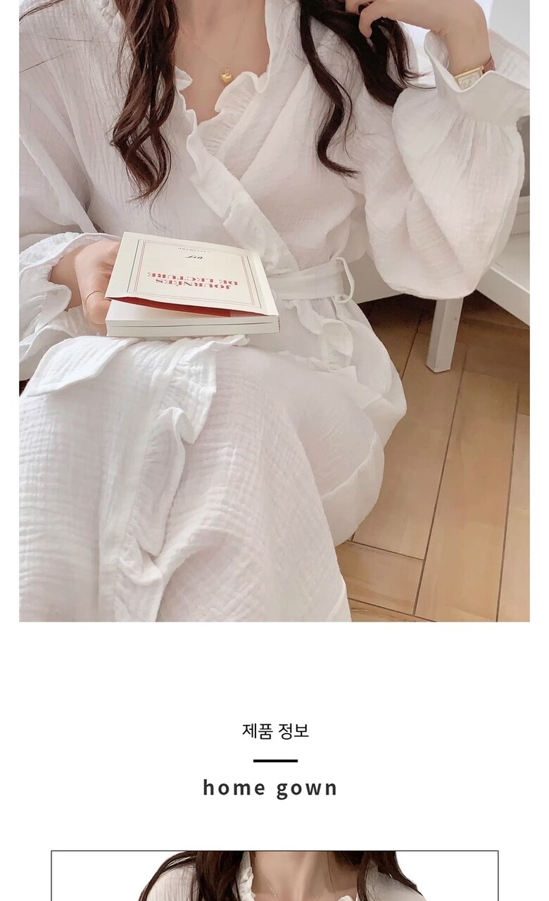 프릴 로맨틱 로브가운 긴팔 홈웨어 (화이트)