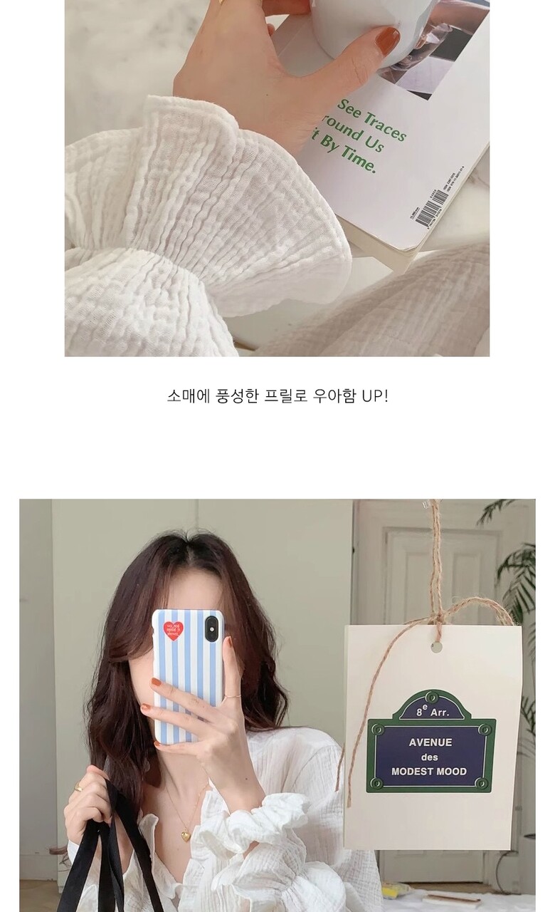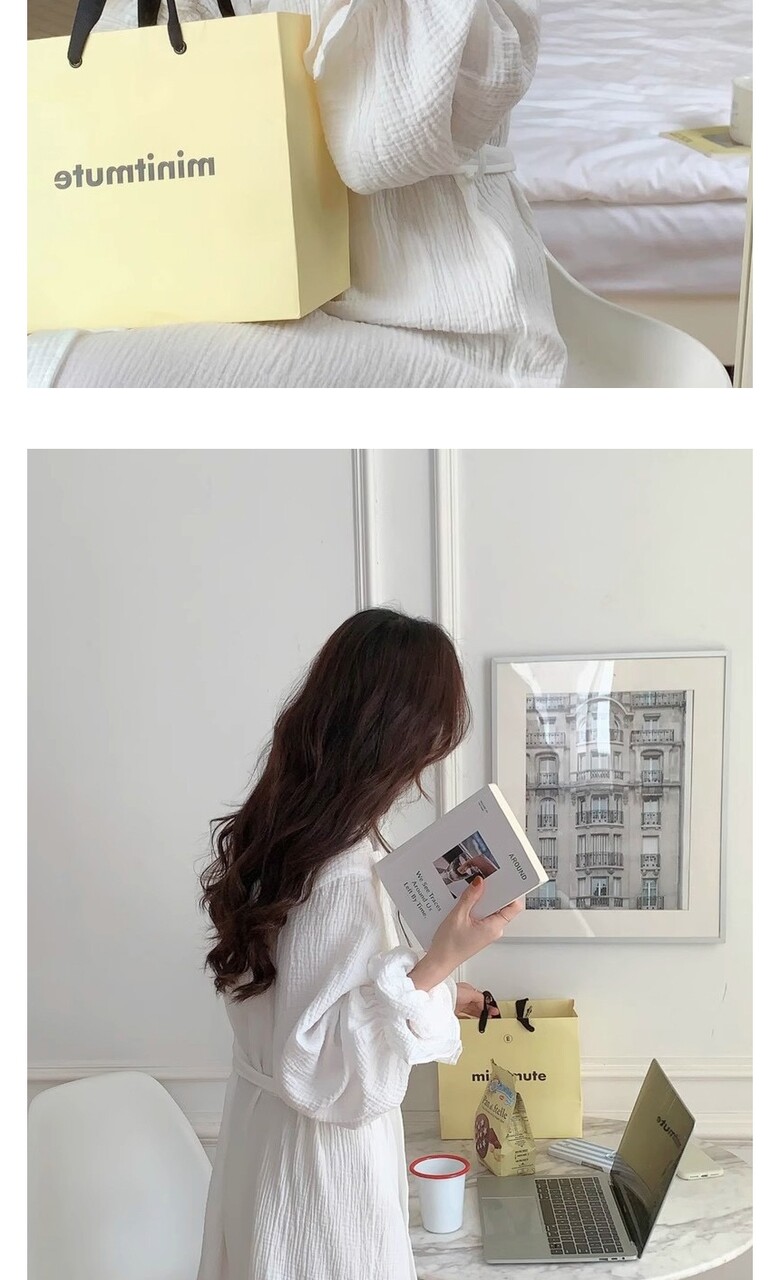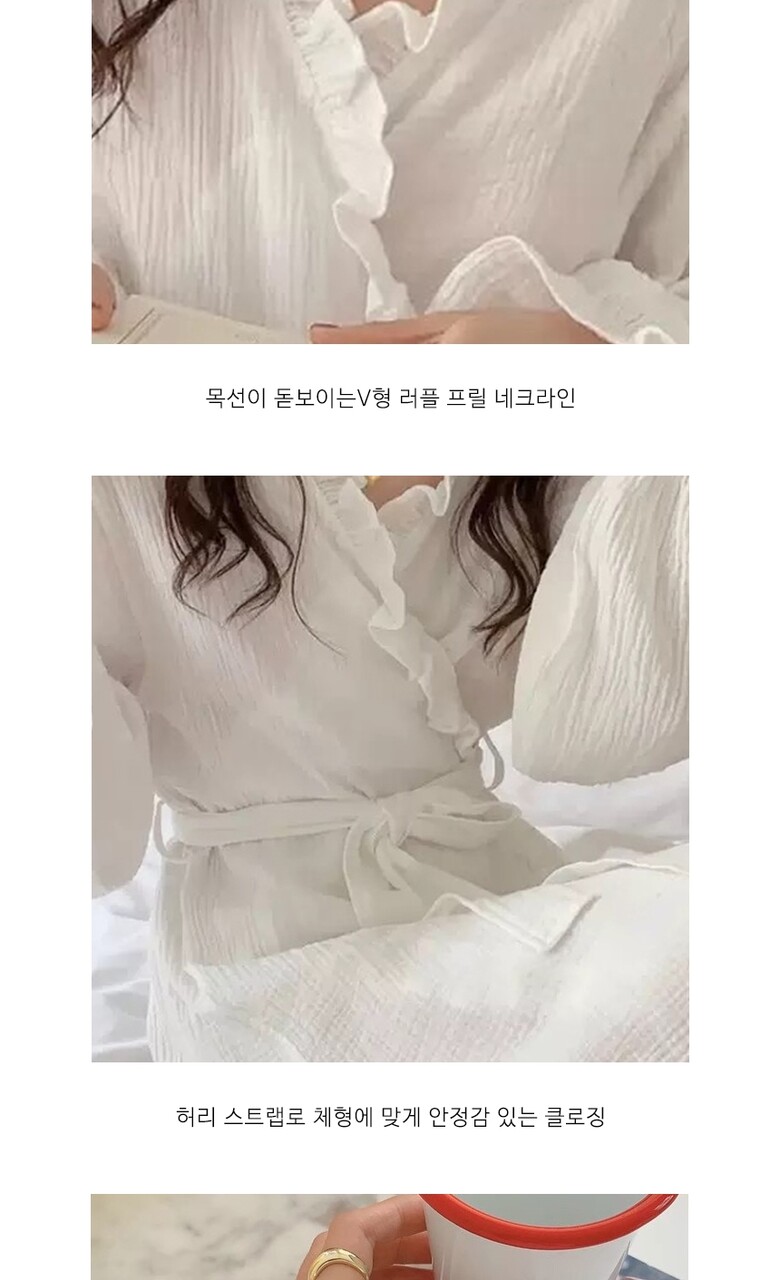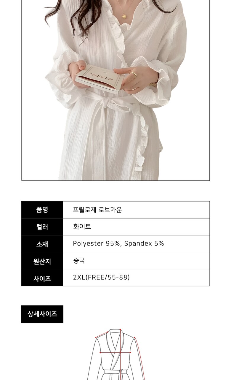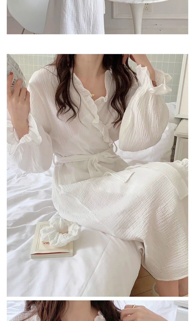 프릴 로맨틱 로브가운 긴팔 홈웨어 (화이트)