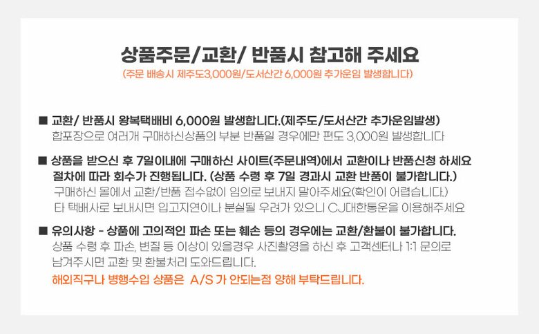 • 반품환불은 상품 회수 후 처리 됩니다.