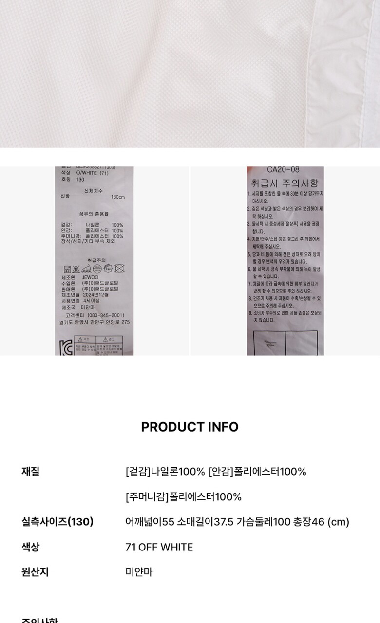 10. 취급방법 및 취급시 주의사항, 안전표시 (주의, 경고 등) 세제를 포함한 물 속에 30분 이상 담가두지 마십시오. (케어라벨참조)