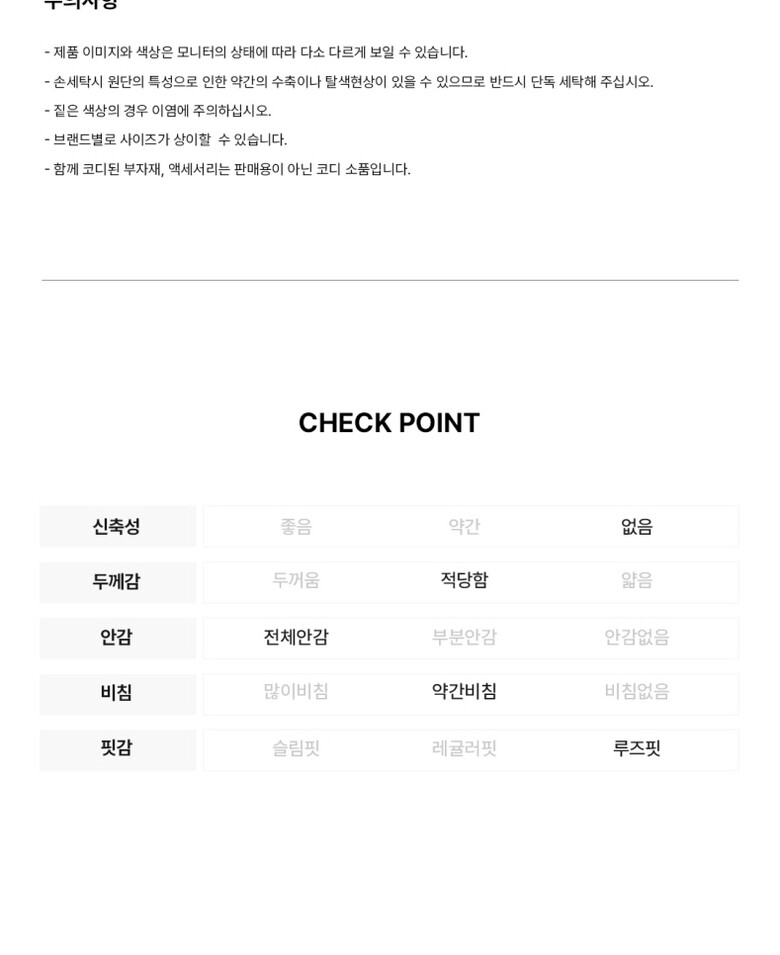 • 처음 배송된 상품상태와 다를 경우(세탁/착용 후 외출하신 경우) 반품이 불가합니다.