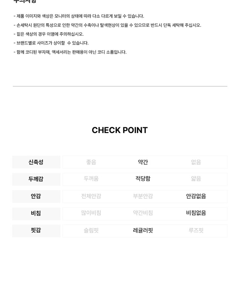 • 처음 배송된 상품상태와 다를 경우(세탁/착용 후 외출하신 경우) 반품이 불가합니다.