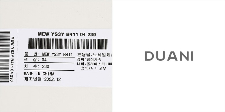 1. 제품 소재 (운동화인 경우에는 겉감, 안감을 구분하여 표시) 겉감-합성가죽 안감-폴리에스터100% 창-EVA+고무