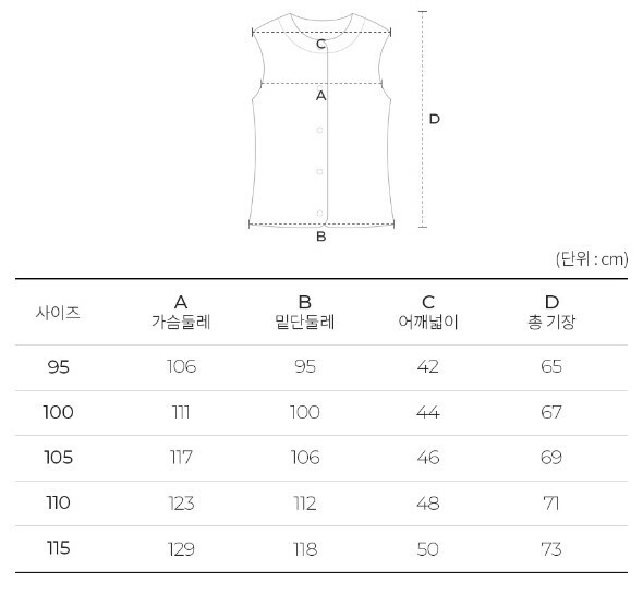 사이즈 단위는 cm이며,재는 위치에 따라 1~3cm사이즈 오차가