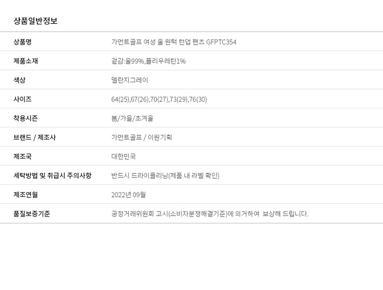 1. 제품 소재 (섬유의 조성 또는 혼용률을 백분율로 표시, 기능성인 경우 성적서 또는 허가서) 겉감:울99%,폴리우레탄1%