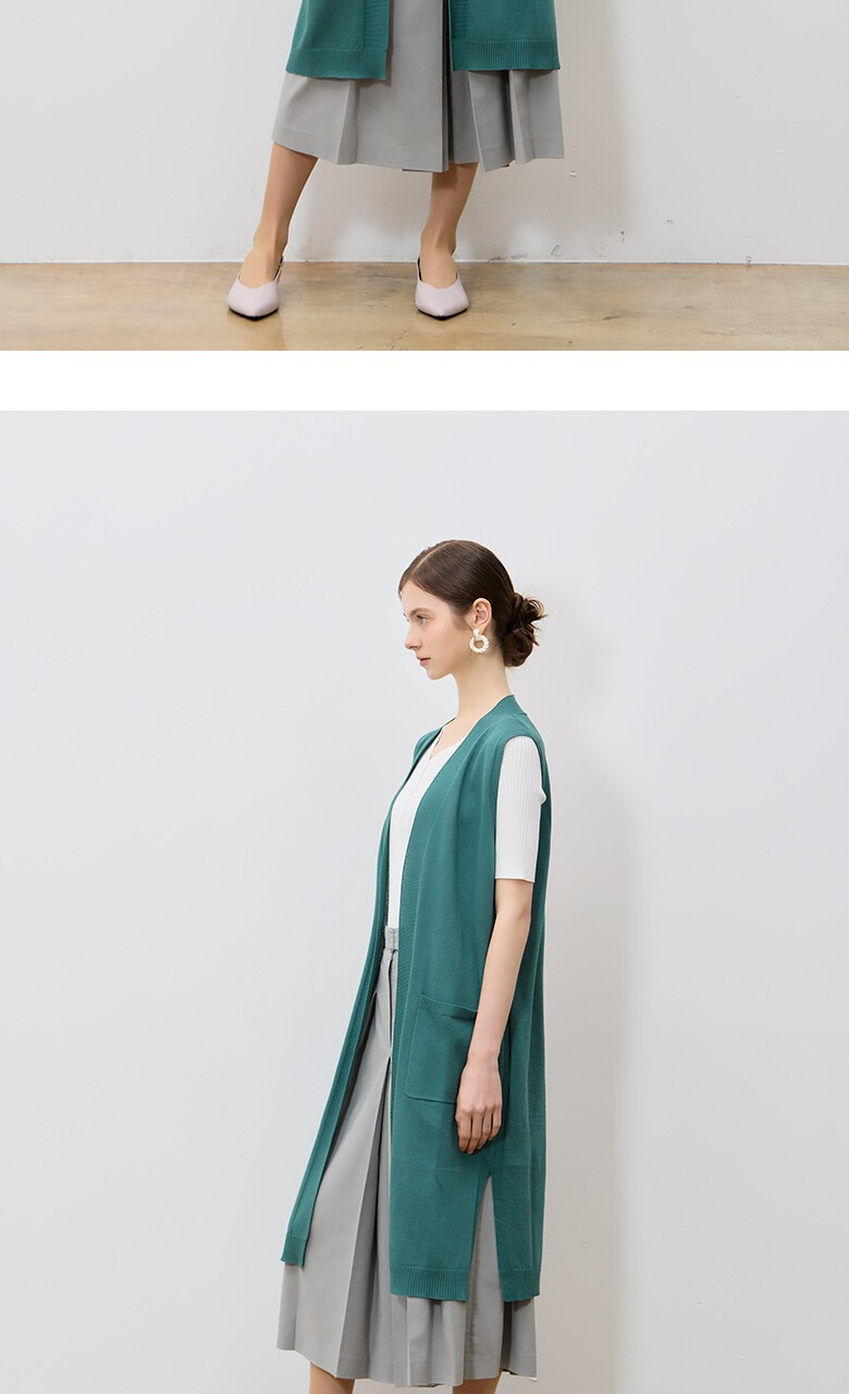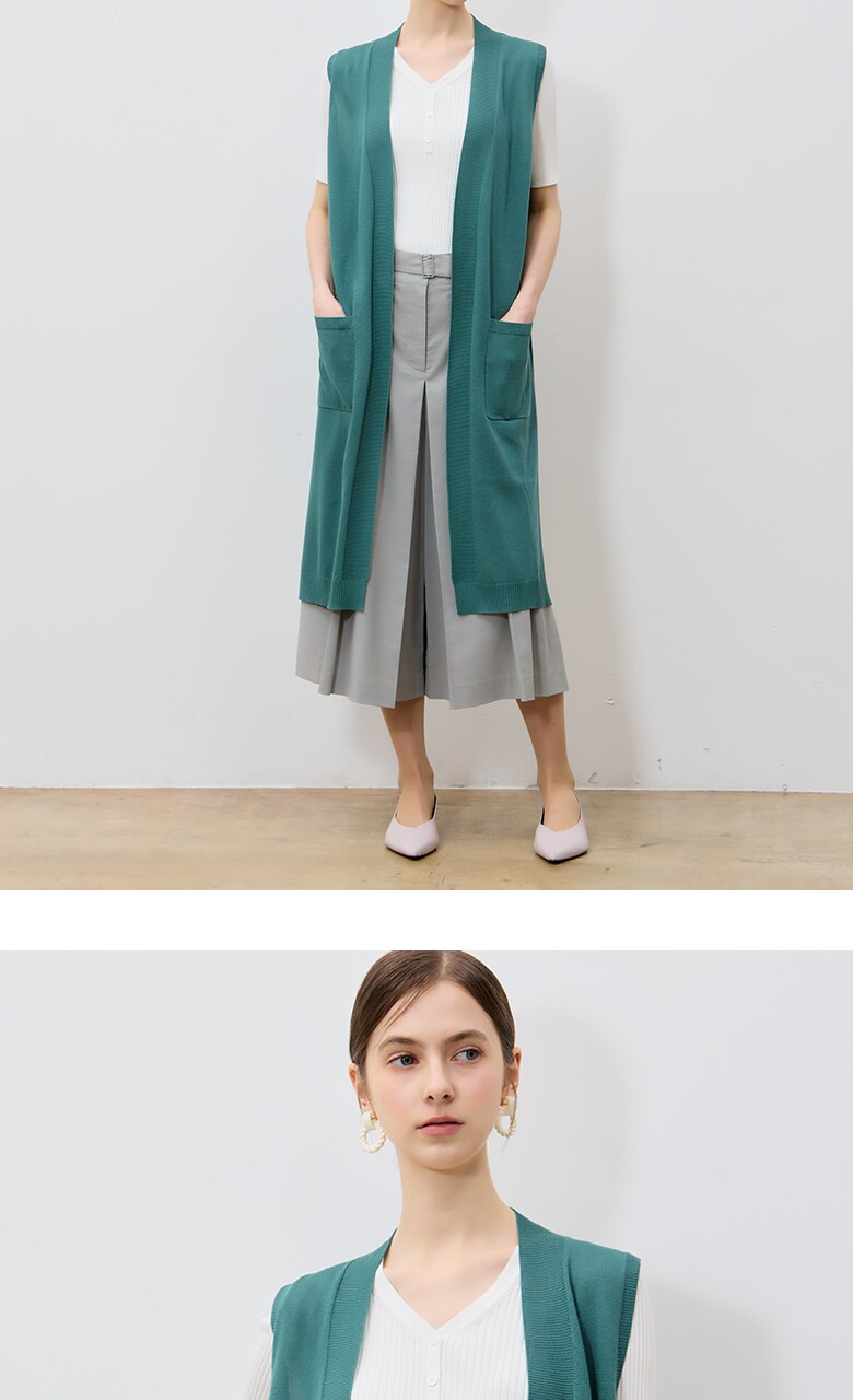 롱한 기장김으로 착용시 스타일리시한 니트 베스트입니다.