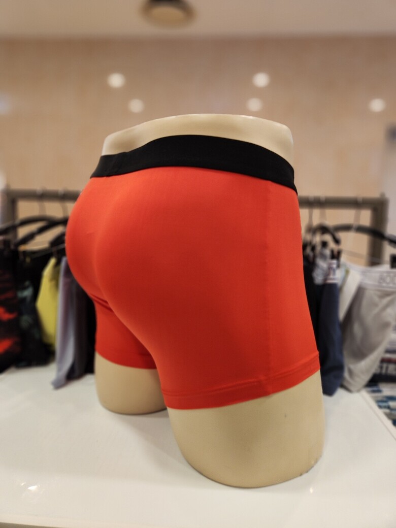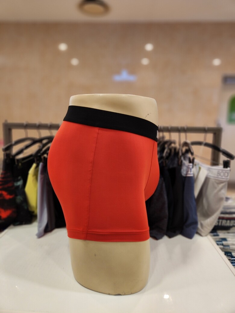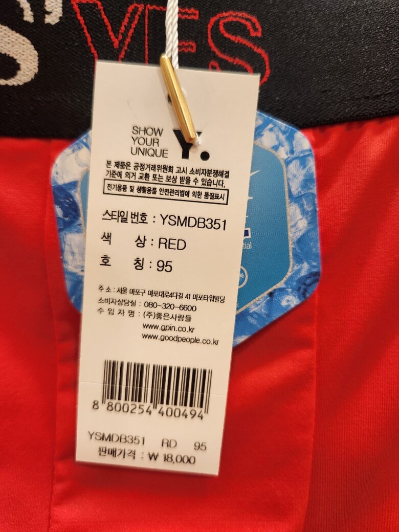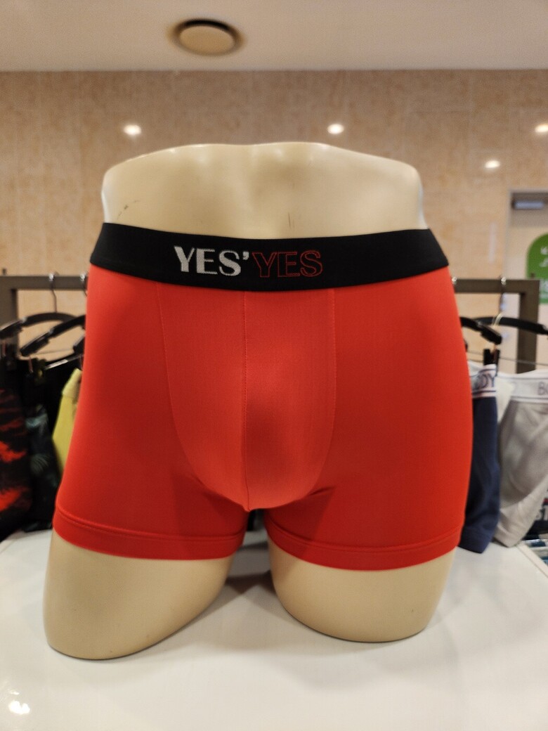 터치감이 매우 부드럽고 쿨링기능성의 나일론(아쿠아엑스)소재의 YES'YES로고가 포인트인 레드컬러의 남성 드로즈.
