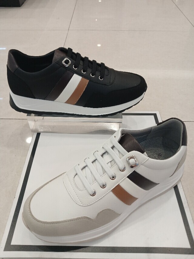 굽높이 약4cm의 높이에 천연소가죽소재를 사용하여 제작된 남성 믹스 스니커즈입니다