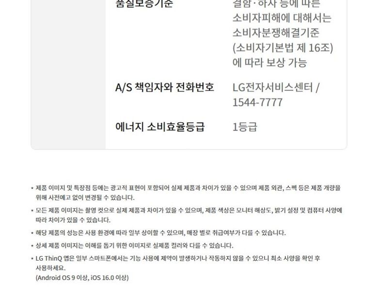 10. 품질보증기준 | 공정거래위원회 고시 소비자분쟁해결기준에 준함 |