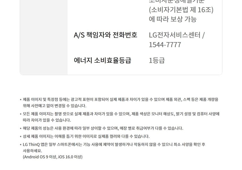 10. 품질보증기준 | 공정거래위원회 고시 소비자분쟁해결기준에 준함 |