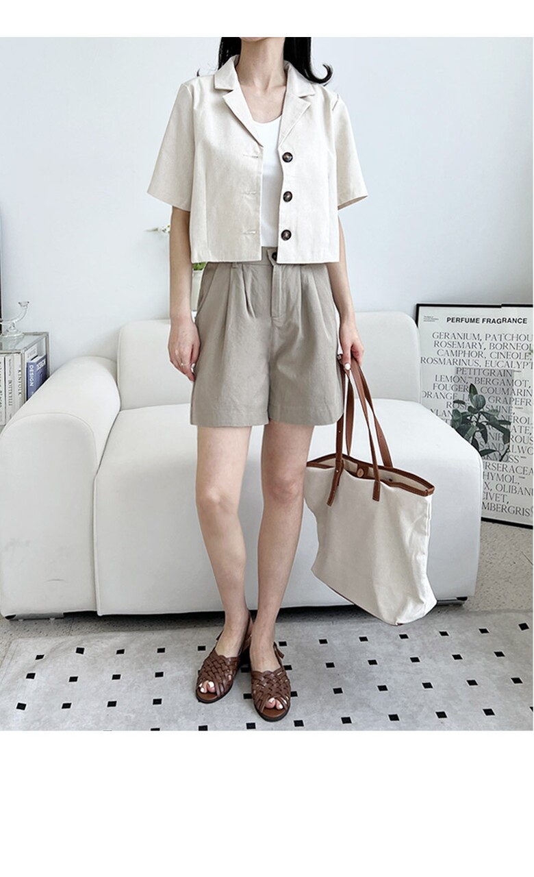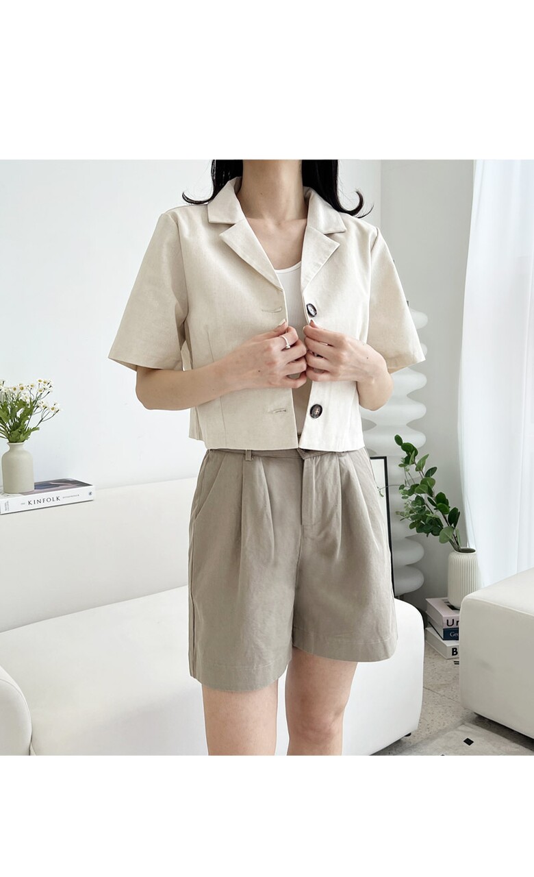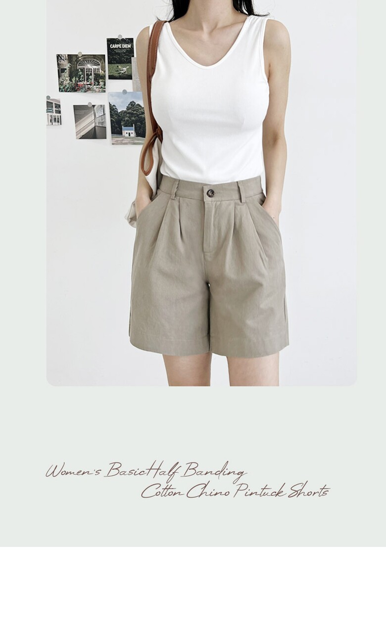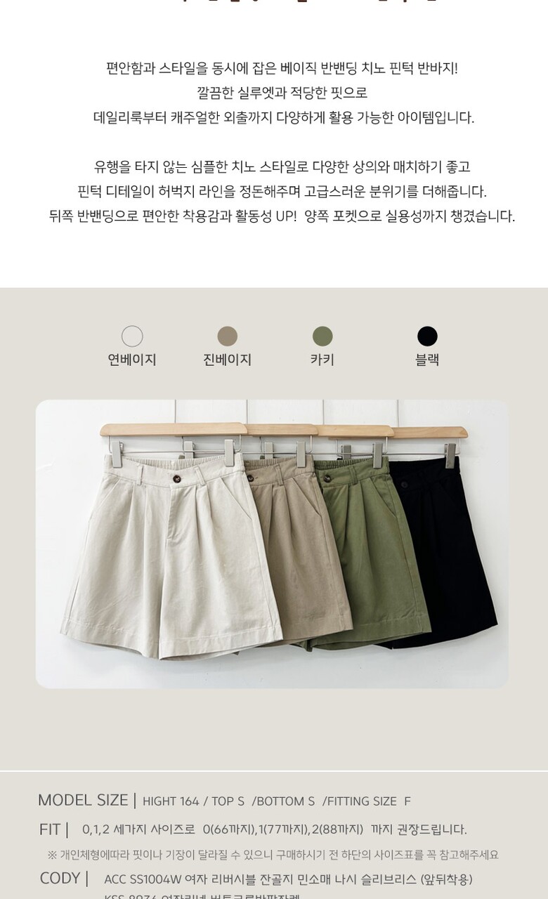 [1+1] 골피아 여자 베이직 반밴딩 코튼 치노 핀턱 반바지