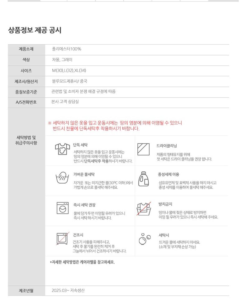6. 세탁방법 및 취급시 주의사항 | 상세설명참고 |