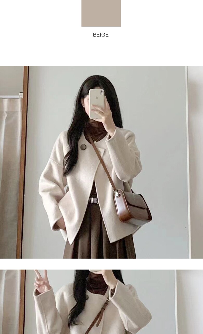 (예쎄) 오픈타입 원버튼 오버핏 모직 숏코트(S4FCT411A)