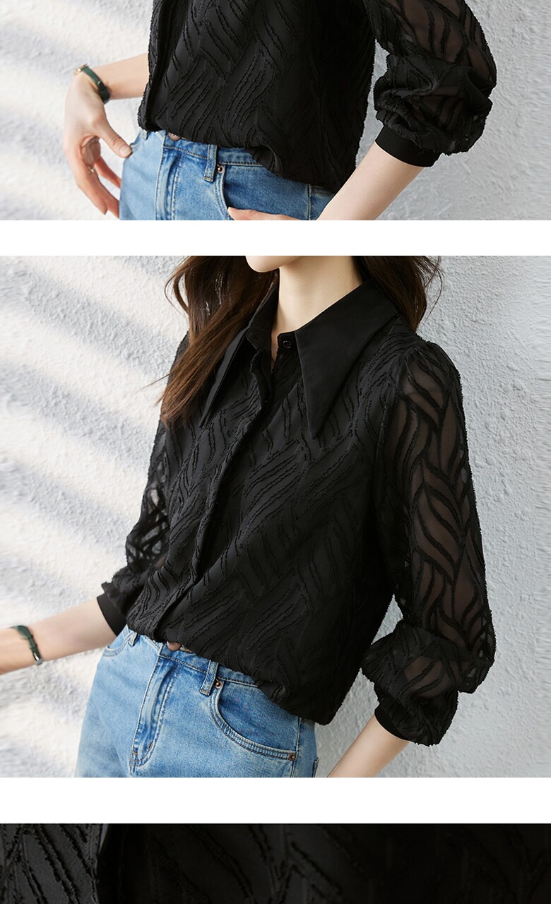 (귈림) 시스루 패턴 히든버튼 블라우스 (G5SBL026P)