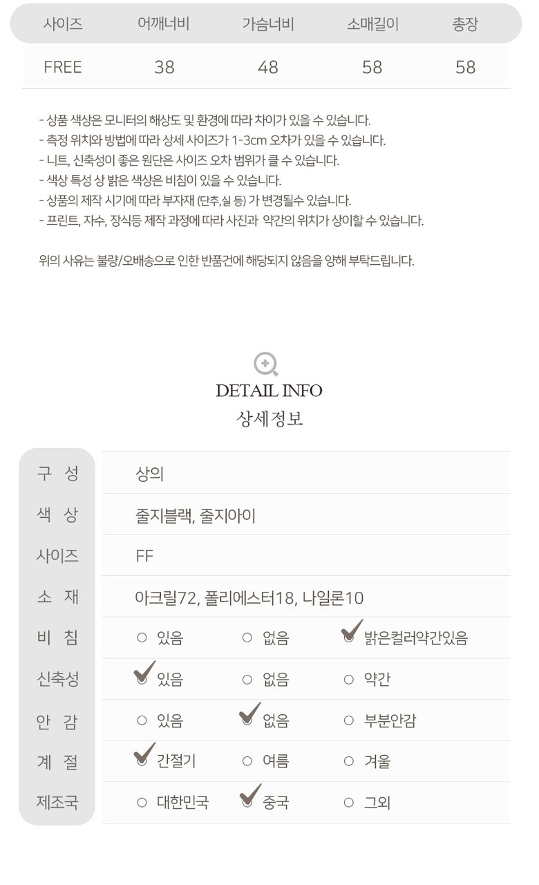 1. 제품 소재 (섬유의 조성 또는 혼용률을 백분율로 표시, 기능성인 경우 성적서 또는 허가서) | 상세페이지 참조 |