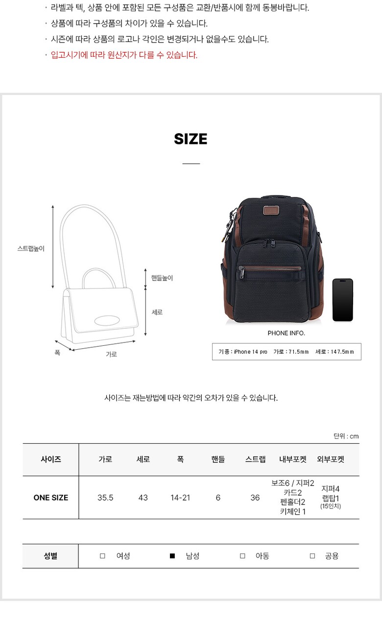 4. 크기 | 가로 35.5cm X 세로 43cm X 폭 14-21cm |