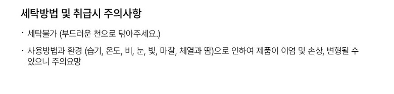 7. 취급시 주의사항 | 열이나 직사광선, 습기에 주의하고, 부드러운 소재를 사용하여 닦아주시기 바랍니다. |