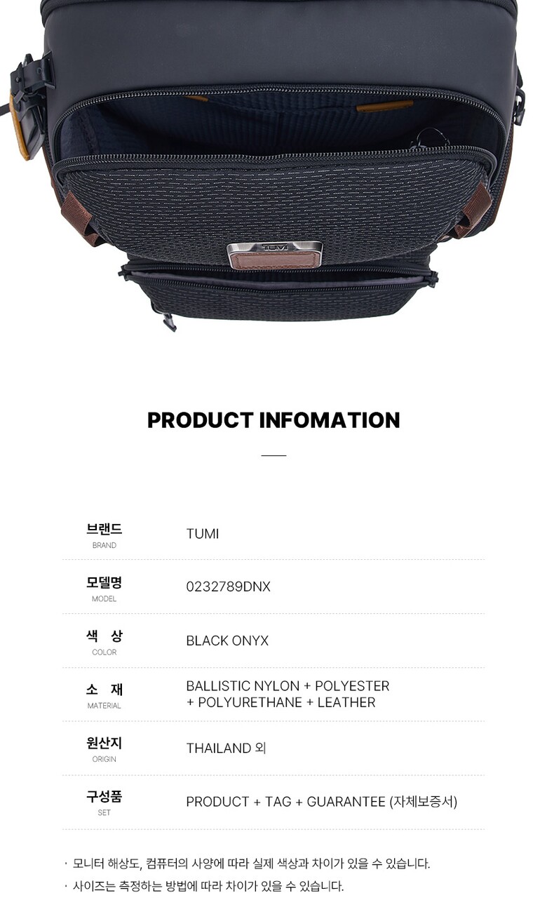 2. 소재 | 발리스틱 나일론 + 폴리에스터 + 폴리우레탄 + 레더 |