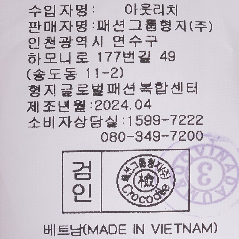 6. 세탁방법 및 취급시 주의사항 | 상품상세참조 |