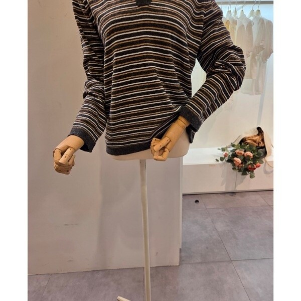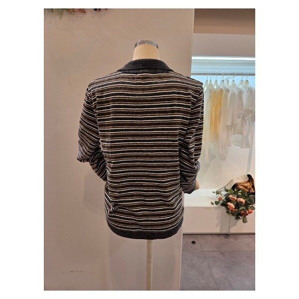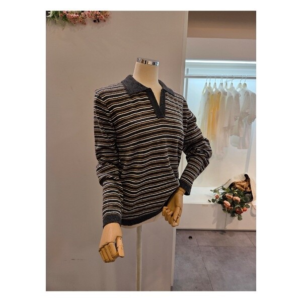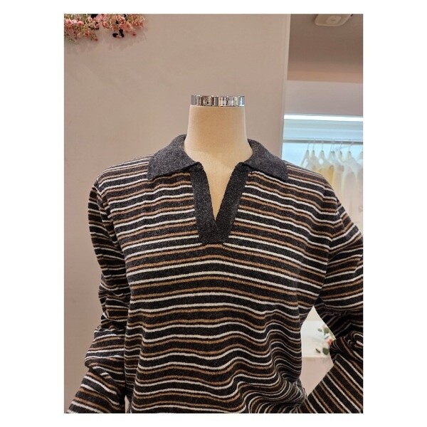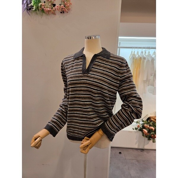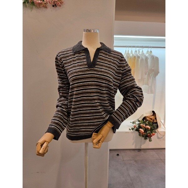 CP7KWT04_슬릿 카라 미니 스트라이프 니트