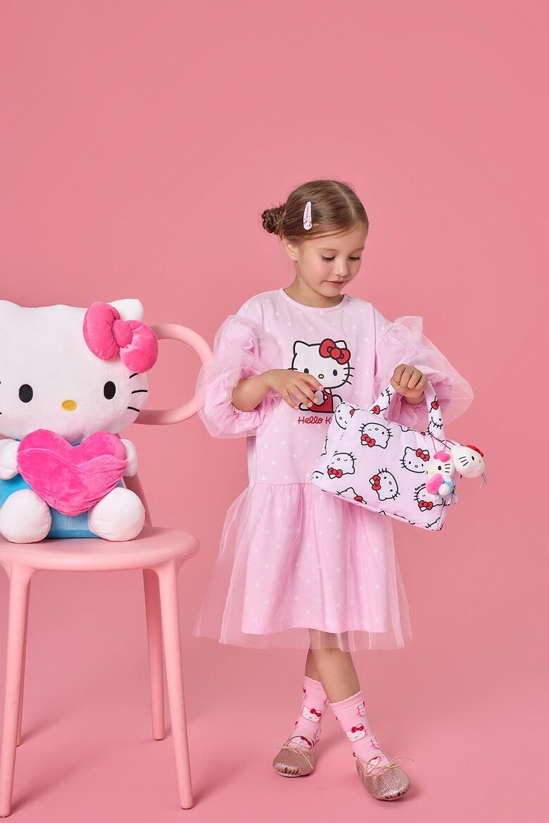 아이들이 가장 좋아할만한 포인트를 다 넣은 헬로키티 샤샤 원피스입니다.