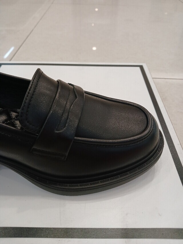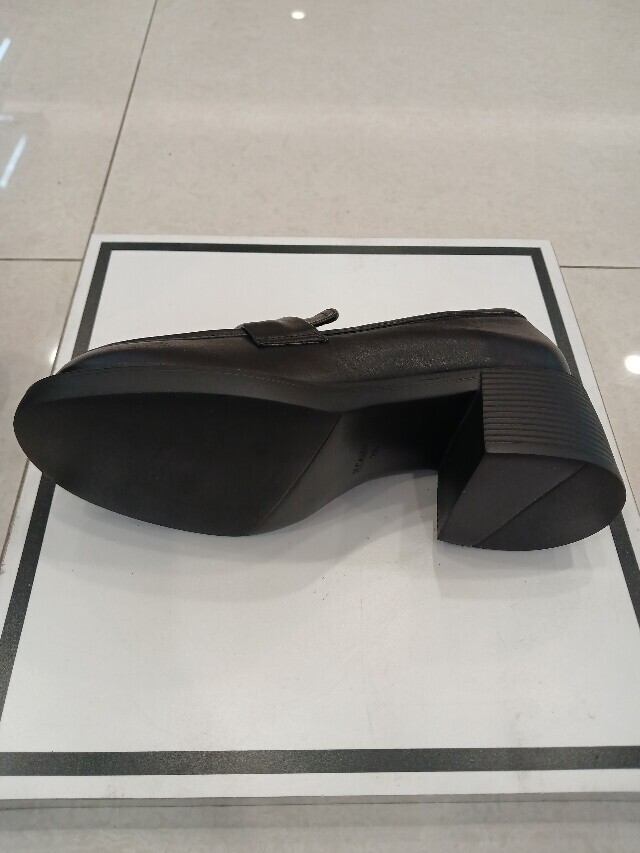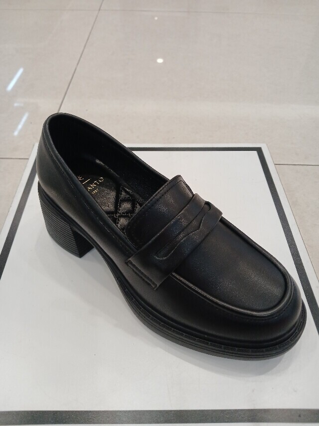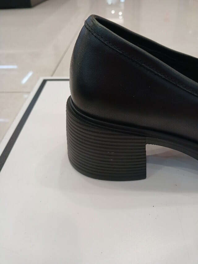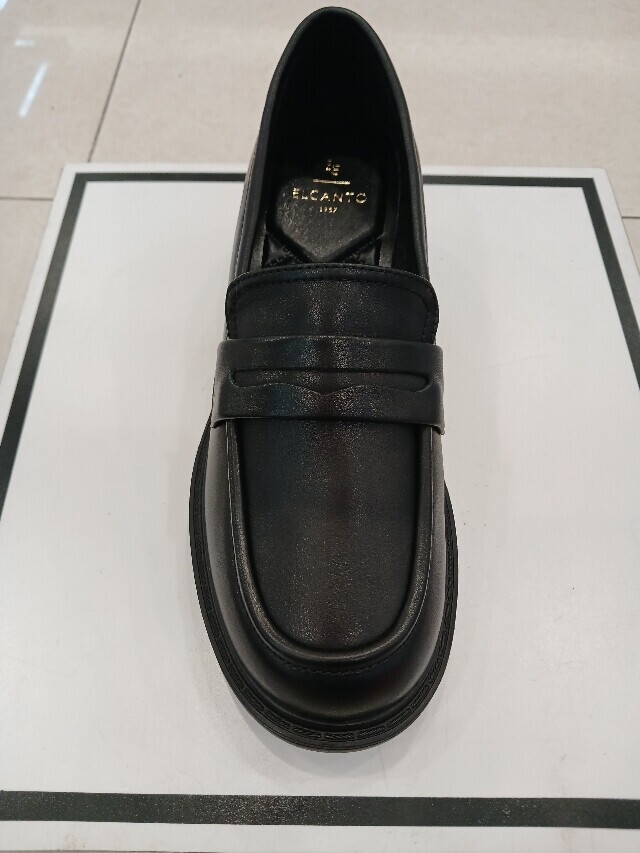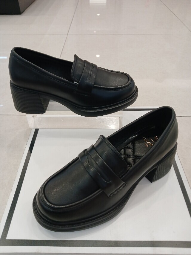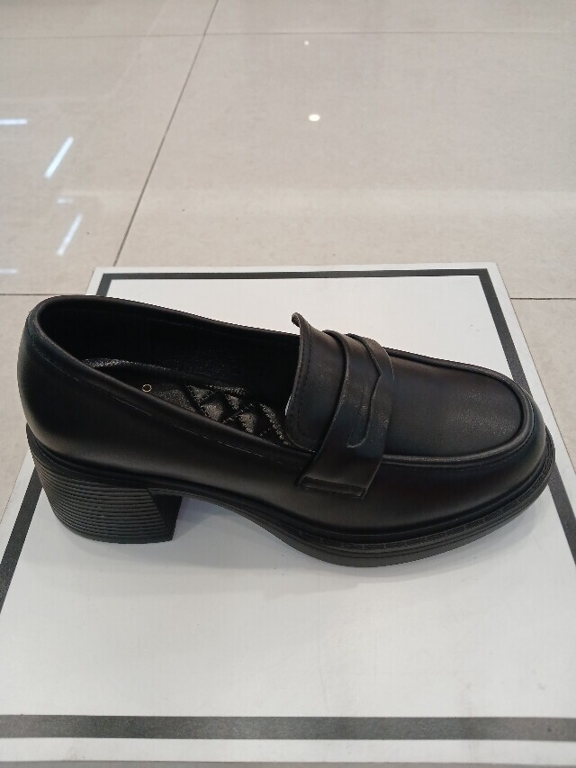 굽높이 약 6cm의 높이에 천연 소가죽소재를 사용하여 제작된 여성 청키로퍼입니다