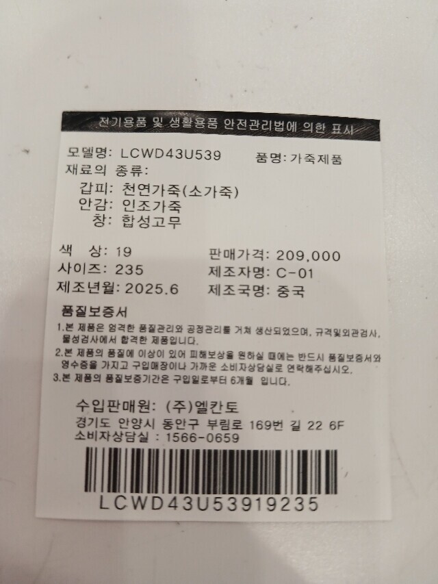 | 7. 품질보증기준 | 관련법 및 소비자분쟁해결기준에 따름 |