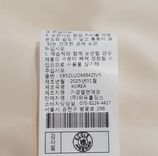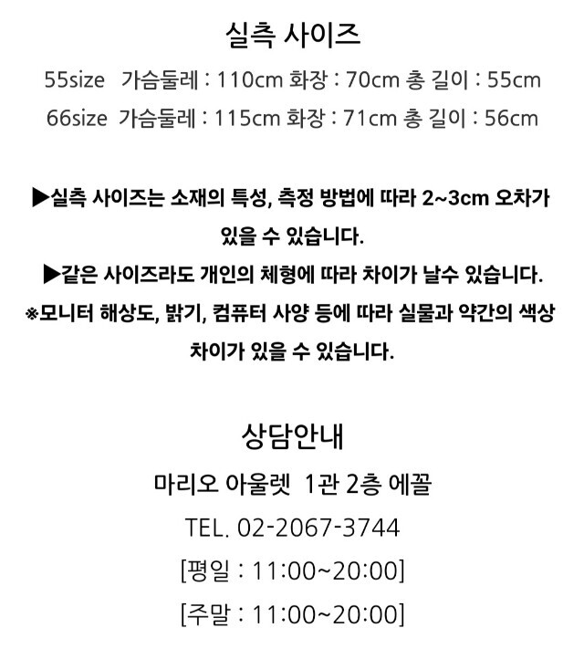 | 6. 세탁방법 및 취급시 주의사항 | 상품상세참조 |