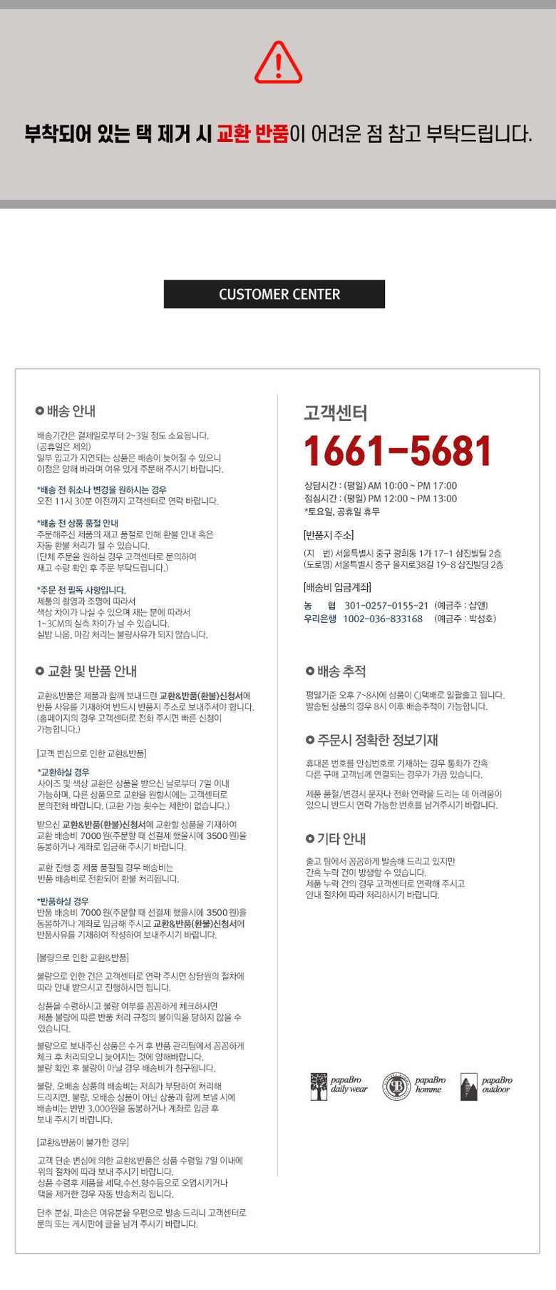 반품 유의사항