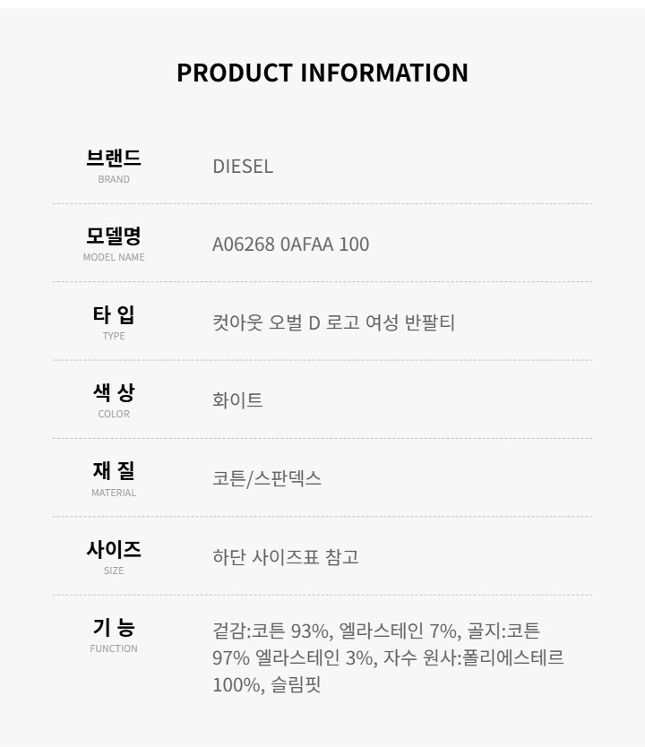 디젤 반팔 A06268 0AFAA 100 컷아웃 오벌 D 로고 여성반팔티 당일발송