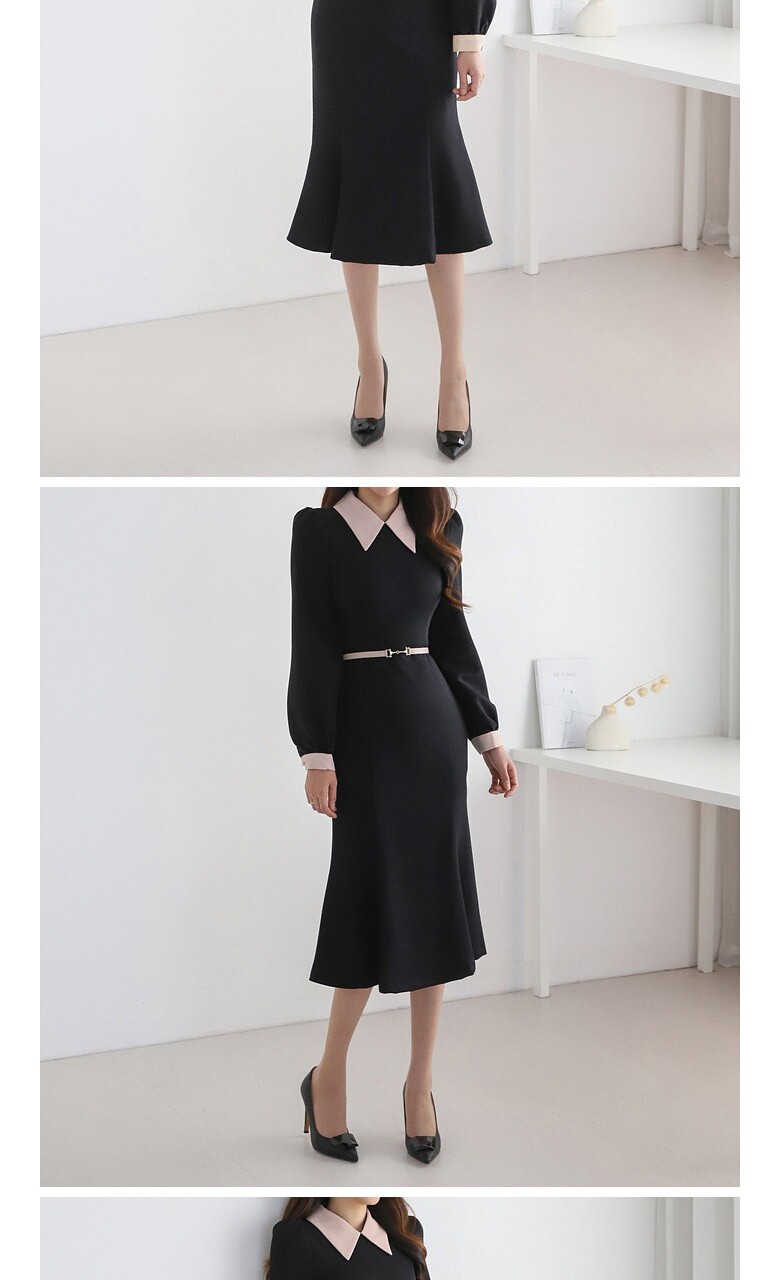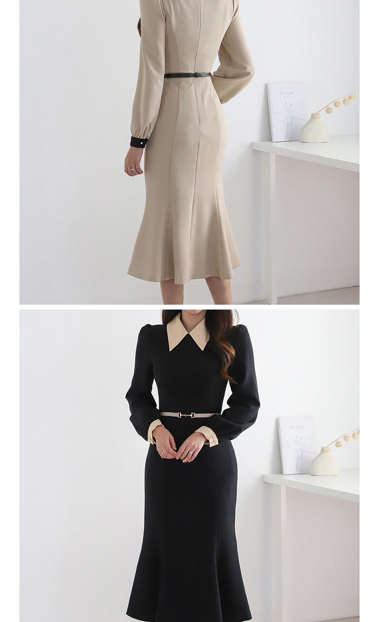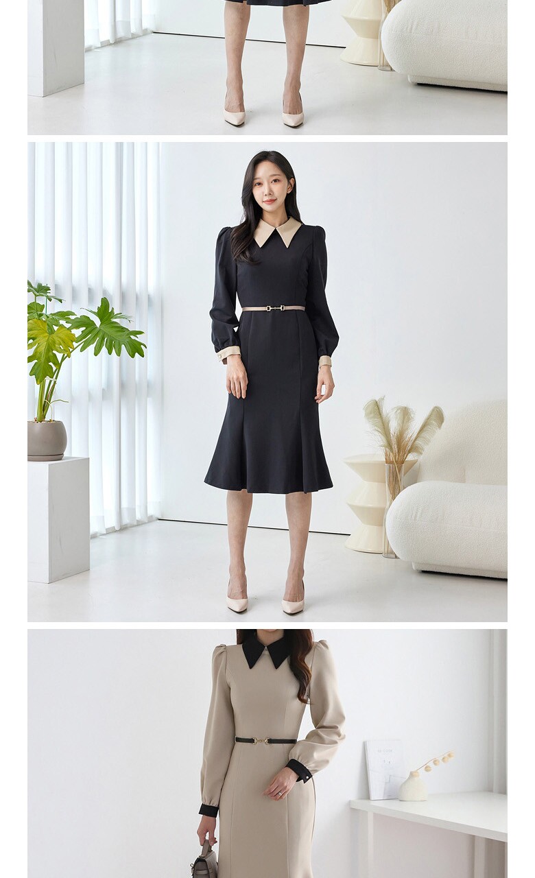 [55-66]배색포인트 벨티드 머메이드 원피스_PM2509OP058C