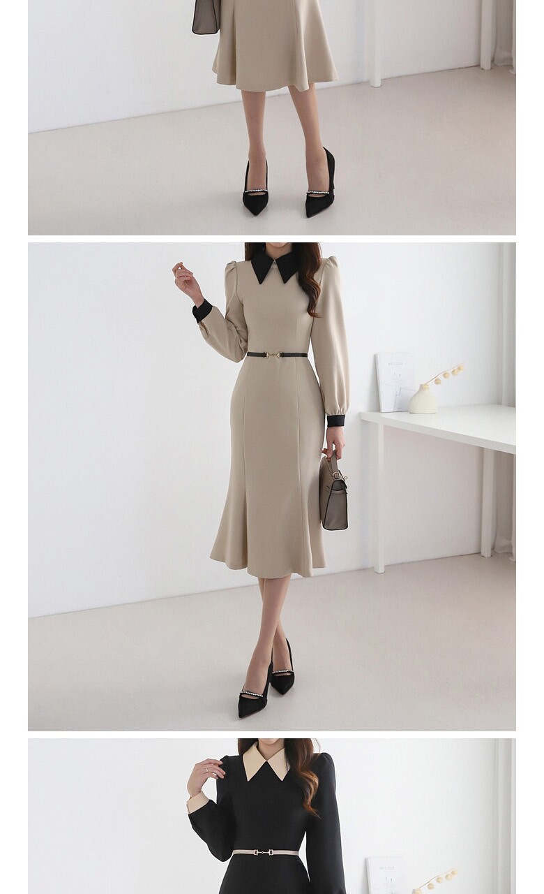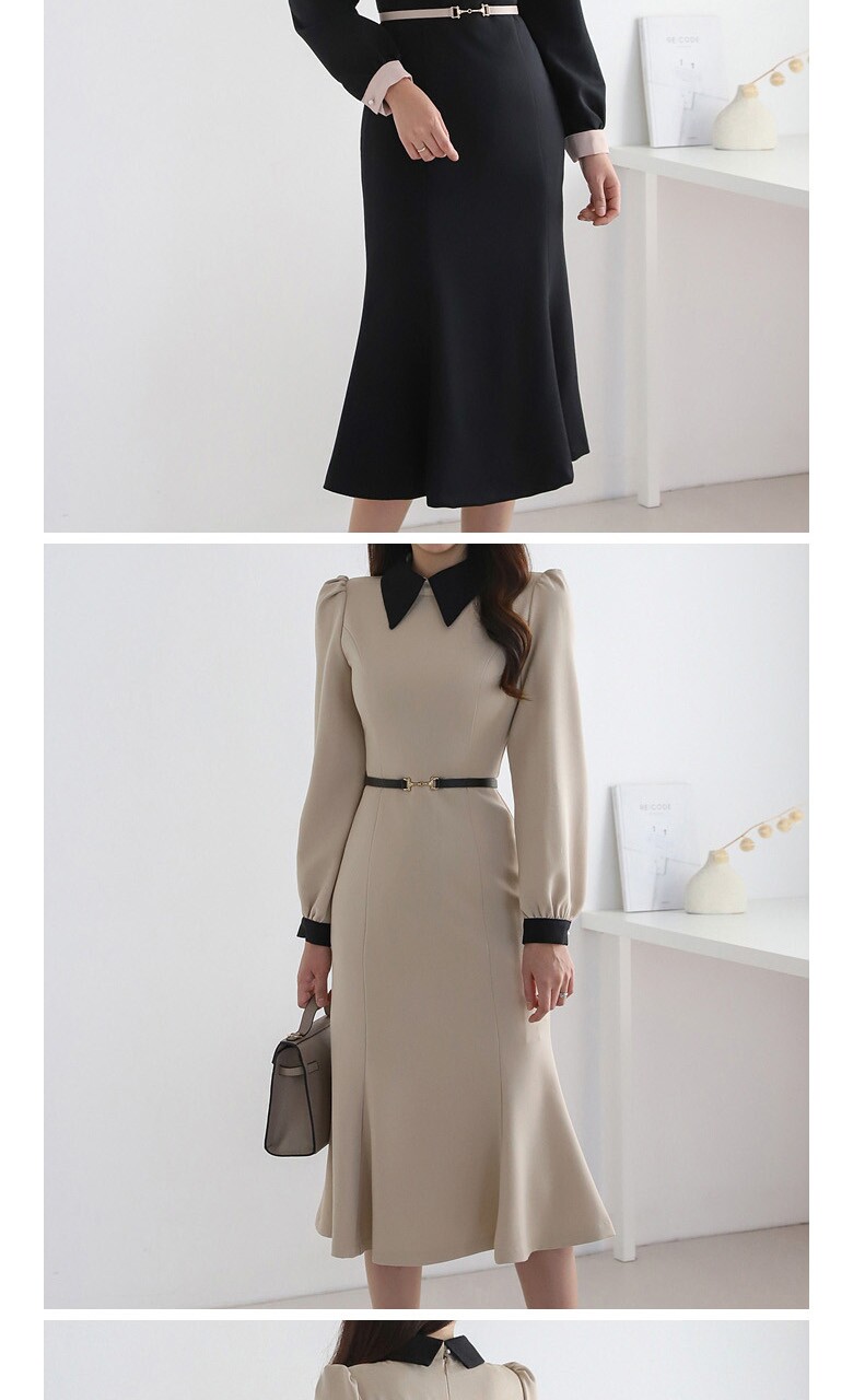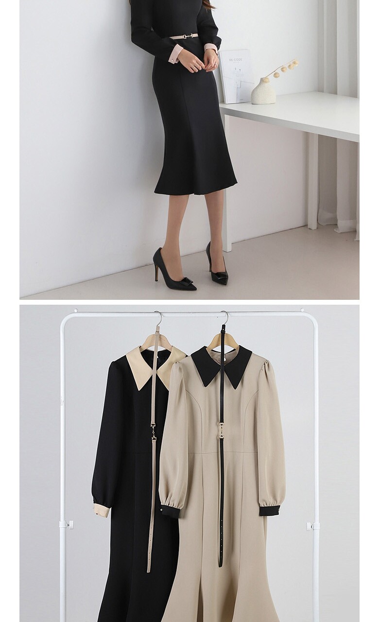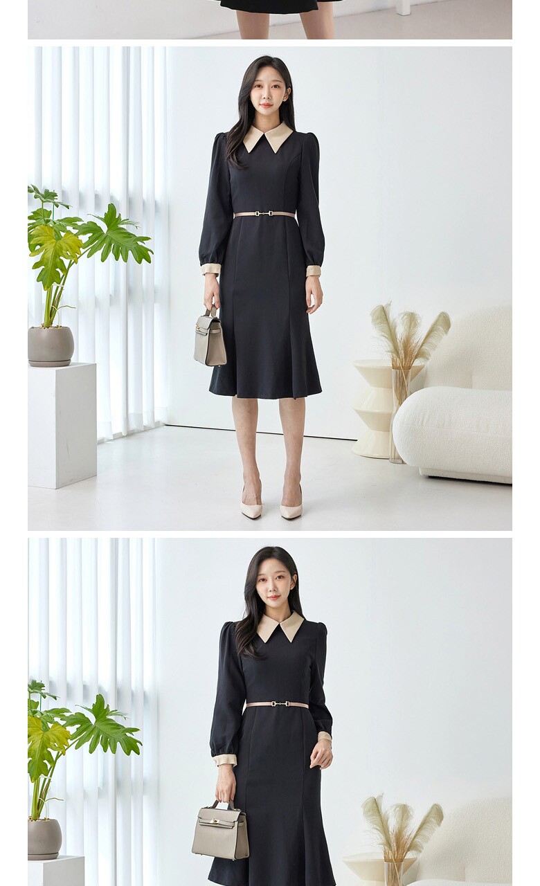 [55-66]배색포인트 벨티드 머메이드 원피스_PM2509OP058C