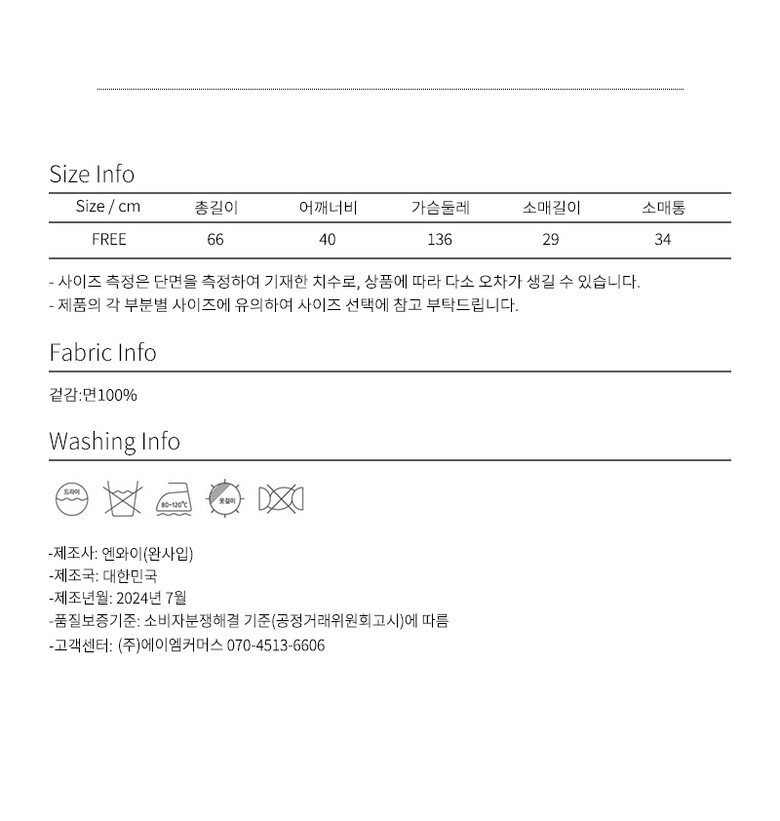 | 6. 세탁방법 및 취급시 주의사항 | 상세페이지및 라벨참조 |