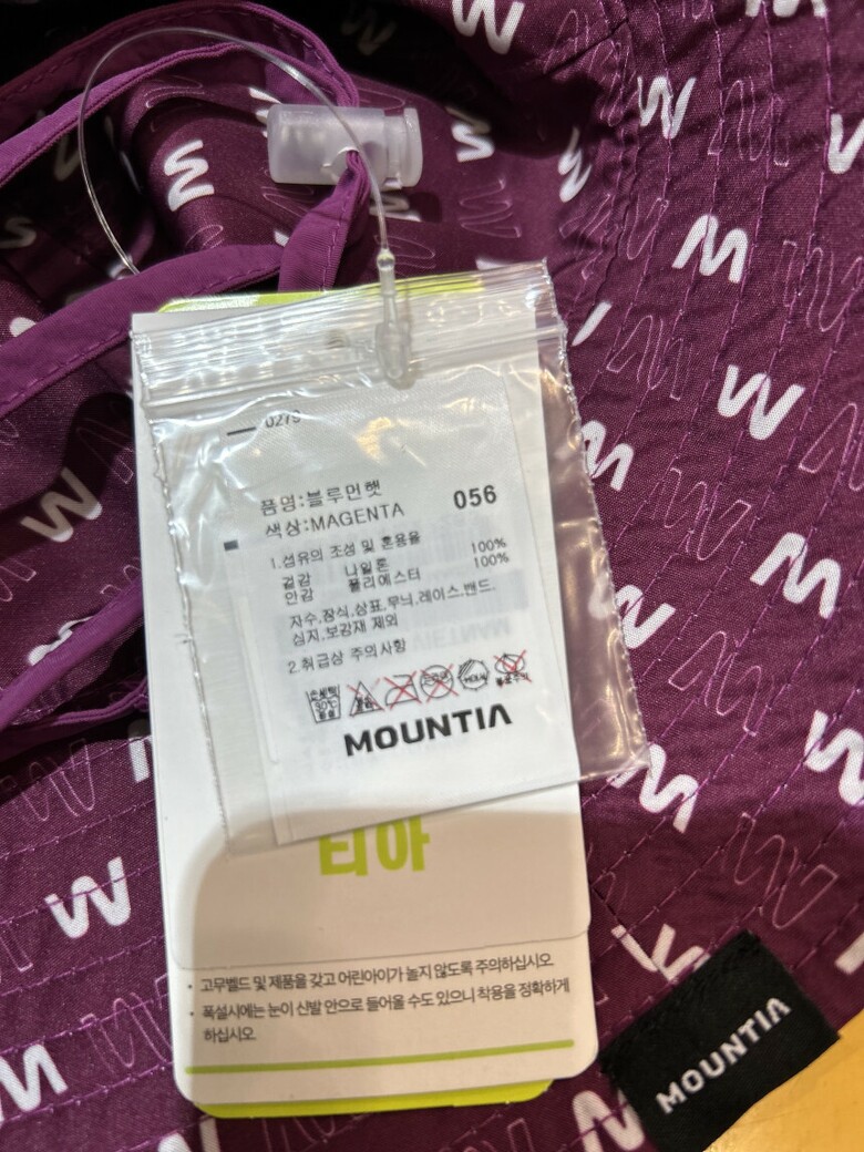 | 2. 소재 | 겉감 : 나일론 100% 안감 : 면 100% |