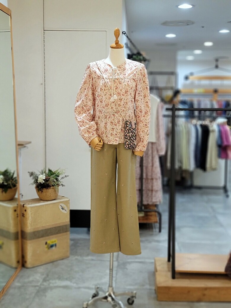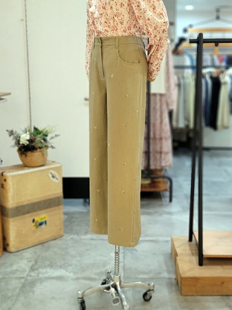 자수로 포인트를 준 일자 핏 팬츠입니다.