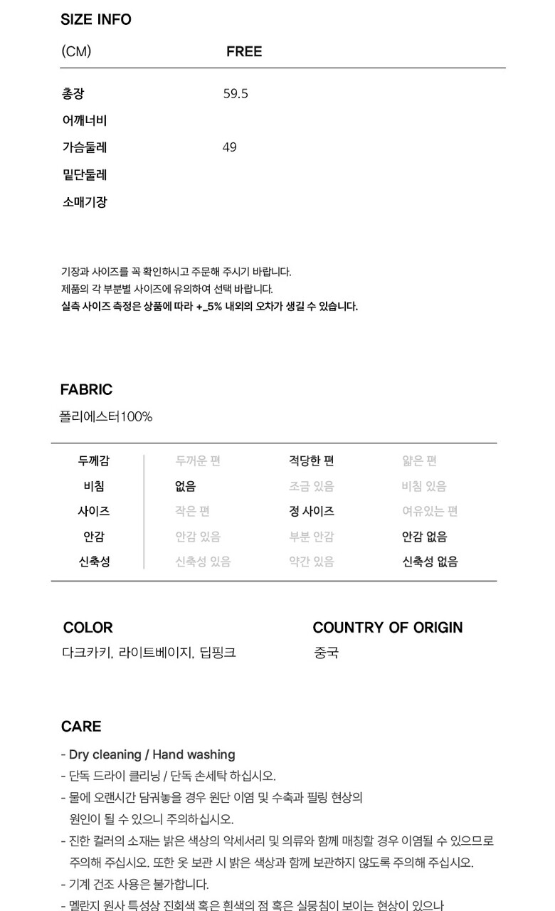 | 2. 색상 | DK_다크카키/DP_딥핑크/LI_라이트베이지 |