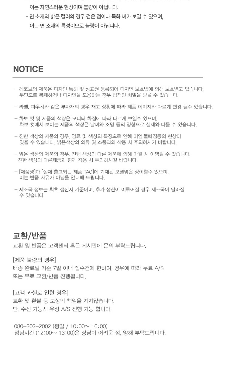 | 1. 제품 소재 (섬유의 조성 또는 혼용률을 백분율로 표시, 기능성인 경우 성적서 또는 허가서) | 상세페이지 참조 |