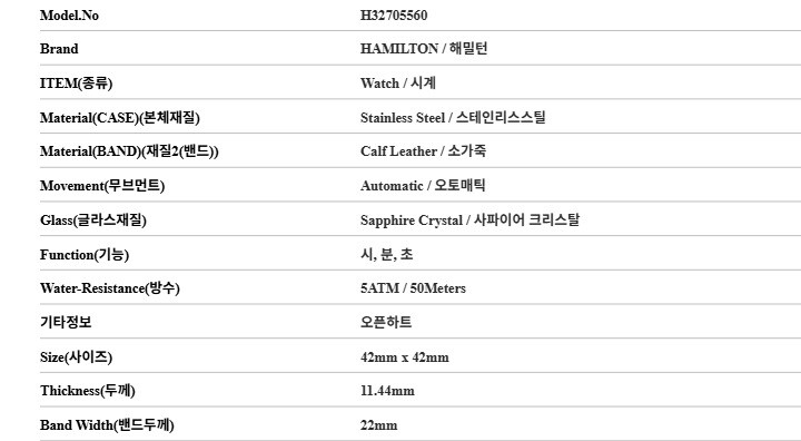 7. 주요 사양 스테인리스스틸 시계 오토매틱